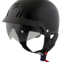 Tucked under the Scorpion EXO-C90’s low-profile, communication device-ready half shell design is an integrated SpeedView dark smoke sun shield for on the go protection from both sun and wind.