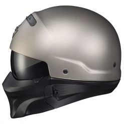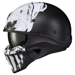 Someone at Scorpion spilled steroids in a batch of helmet juice. Part retro drag racer, part cyborg soldier of the future, the Scorpion Covert Helmet is an augmented half lid the likes of which the moto world has never seen. The main construction is a clean, badass half helmet with a drop down visor. A removable rear sleeve allows the Scorpion Covert Helmet to transform from a standard skid lid into a ¾ open face helmet. The face mask detaches easily and attaches securely via tiny neodymium magnets (the same type of rare earth magnets that make your hard drive work), launching the style and function of the Scorpion Covert Helmet into uncharted airspace. By their own admission, Scorpion “took a perfectly good half helmet and made it badder.”