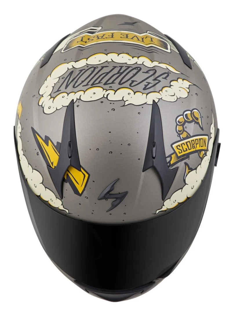 The EXO-R320 from Scorpion changes the paradigm for what you think you can afford in a helmet for under $100. An LG polycarbonate shell and dual density EPS result in a lightweight and safe DOT approved full face helmet. The KwikWick II liner is moisture wicking, anti-microbial, quick drying, can be easily removed and is machine washable. Aero-tuned vents on the top and front of the helmet offer excellent ventilation. The Ellip-Tec Pinlock-ready face shield can be easily removed without tools.