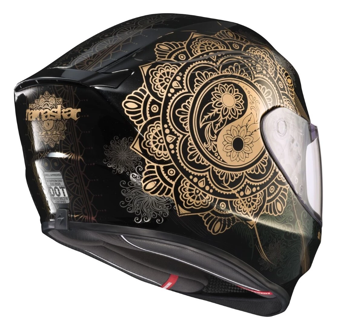 Respect the ride. The EXO-R420 Namaskar Helmet isn’t some half-baked race-inspired helmet. This is the real deal, with an advanced LG polycarbonate shell that is SNELL approved. The Ellip-Tec 2 face shield pulls the shield snug, making the EXO-R420 aerodynamic. Cheek pads have an emergency release system and are washable if needed. Take the Scorpion EXO-R420 to the track or to the twisties.